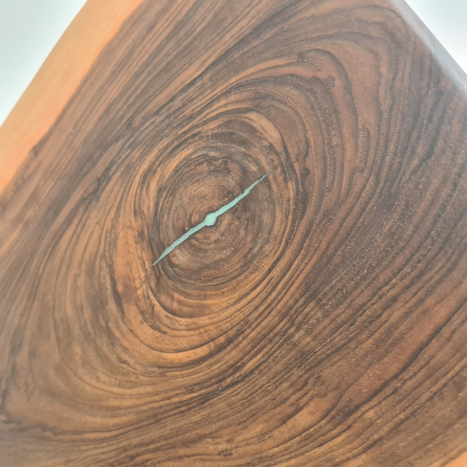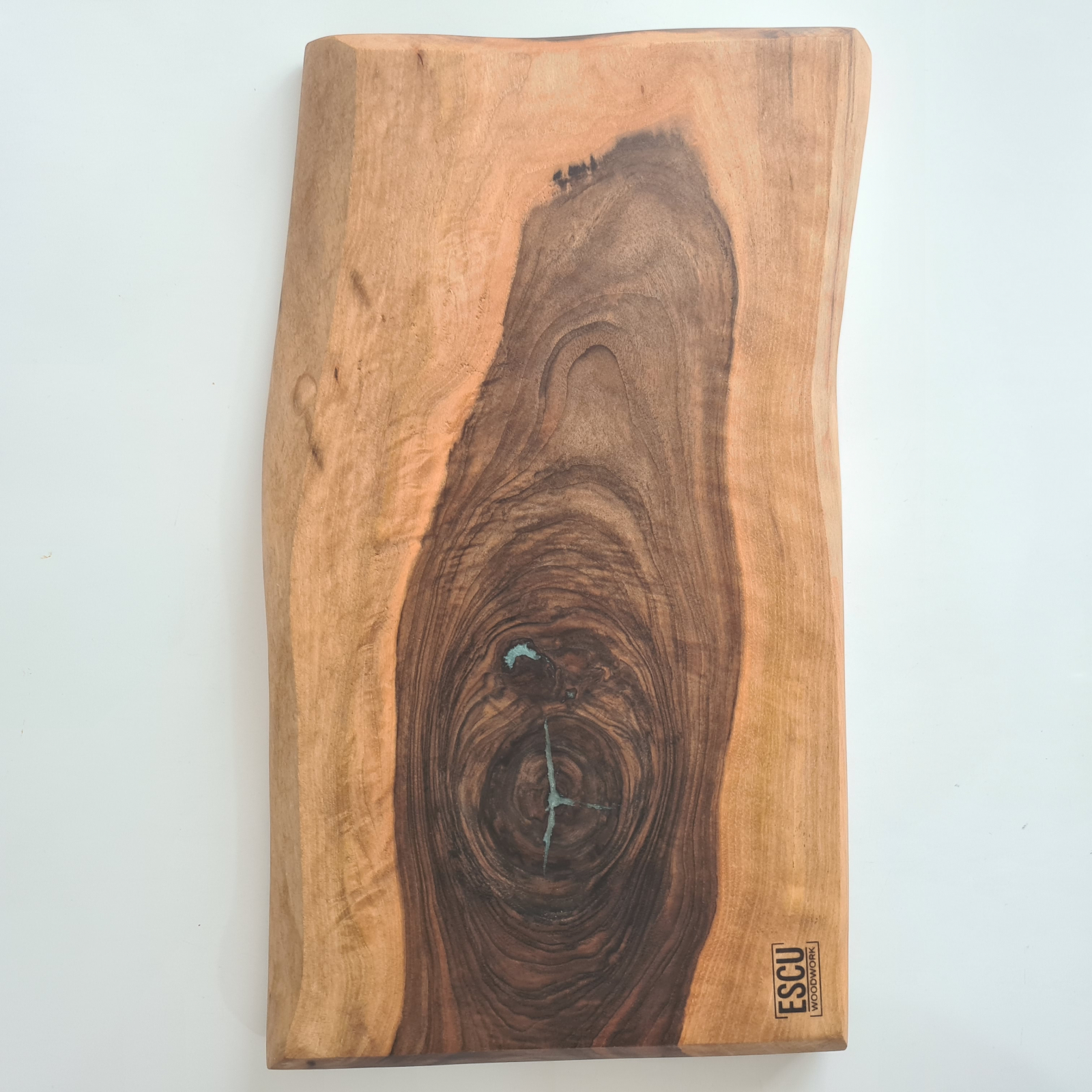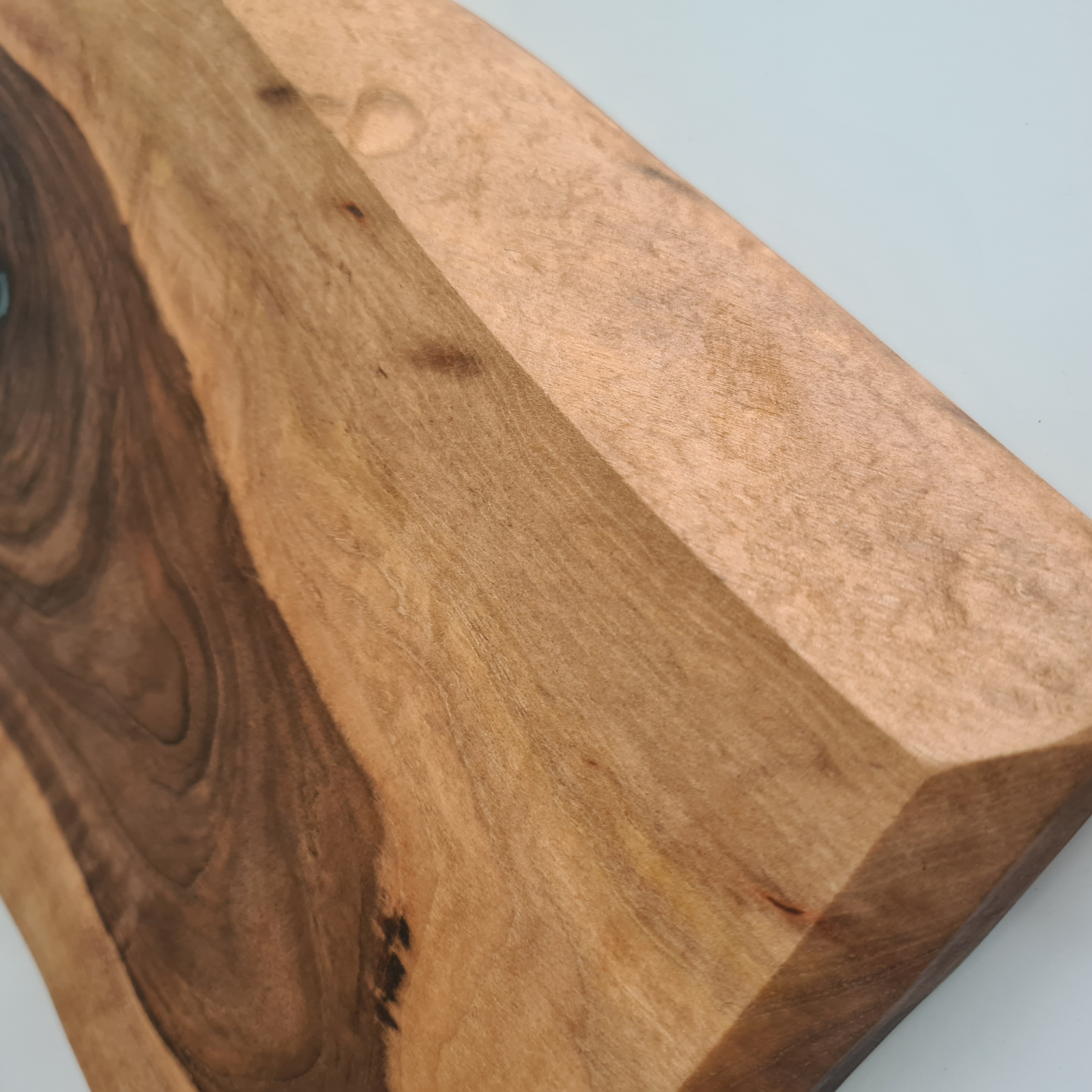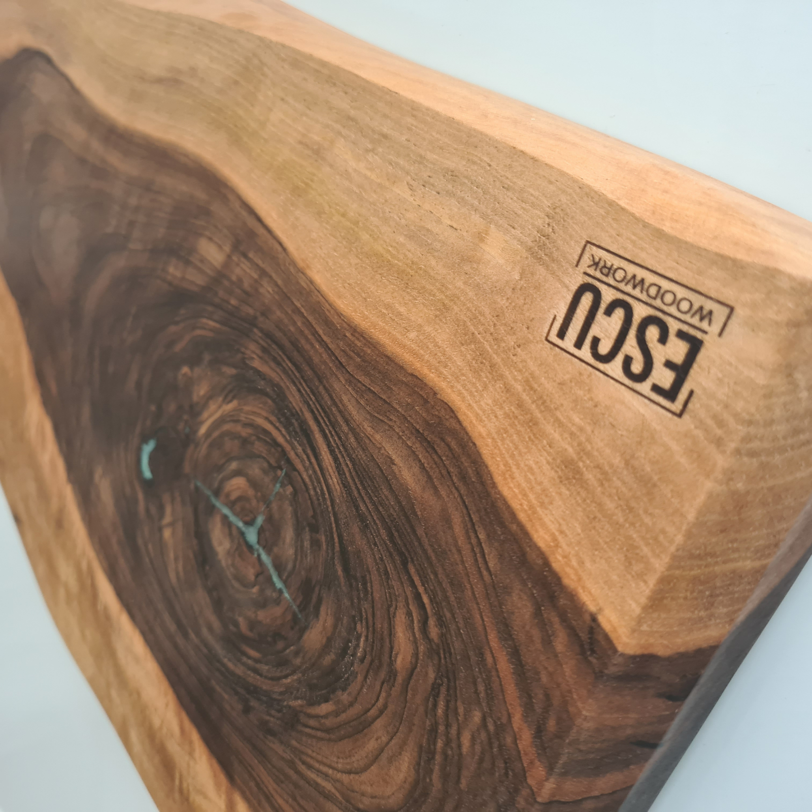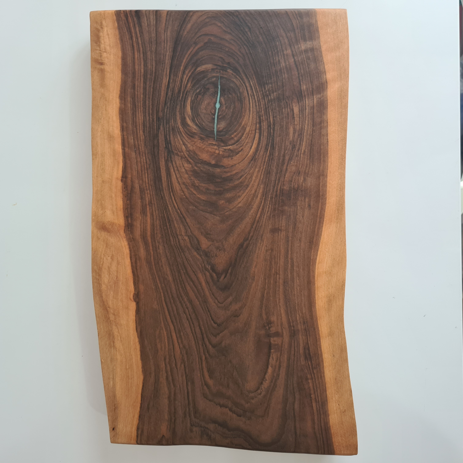 Tocator din lemn masiv de nuc cu insertie de rasina epoxidica.
